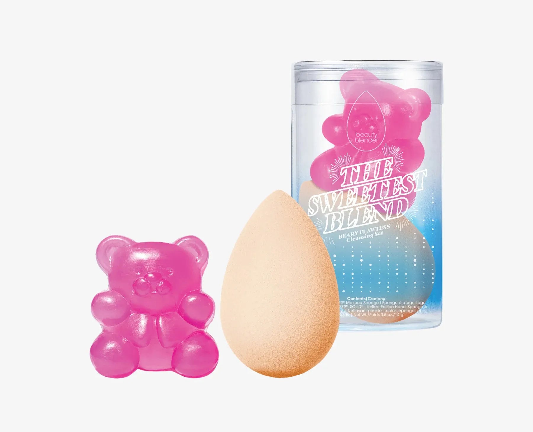 Zestaw beautyblender Sweetest Blend to idealna propozycja na prezent dla każdego miłośnika nieskazitelnego makijażu i nieskazitelnej czystości gąbeczki beautyblender po wykonaniu makijażu. Zawarte w zestawie mydełko fantazyjnym kształcie uroczego misia zapewnia higieniczną czystość gąbeczki i pędzli kosmetycznych a także dba o ich idealną kondycję.
